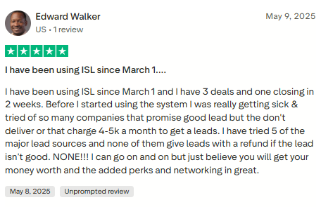 Unlike platforms that sell lists of prospects who never expressed interest in selling, traditional pay-per-lead providers with limited transparency or questionable practices, or running your own digital ads (where you face algorithm changes, rising costs, and no refunds), iSpeedToLead has been generating real motivated seller leads for over 5 years. You can see exactly when each lead was generated, preview its full details, confirm whether it’s truly exclusive, and every lead is backed by the industry’s strongest 21-day bad-lead refund policy.